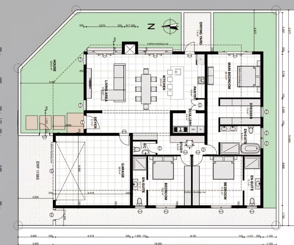 Step into the welcoming reception area/foyer, where the journey of discovering your dream home begins. The heart of this residence boasts a modern kitchen, artfully designed and equipped with top-of-the-line appliances. The kitchen seamlessly flows into the living area, featuring a charming breakfast nook perfect for casual dining. A well-appointed pantry and scullery offer dual water points for added convenience.