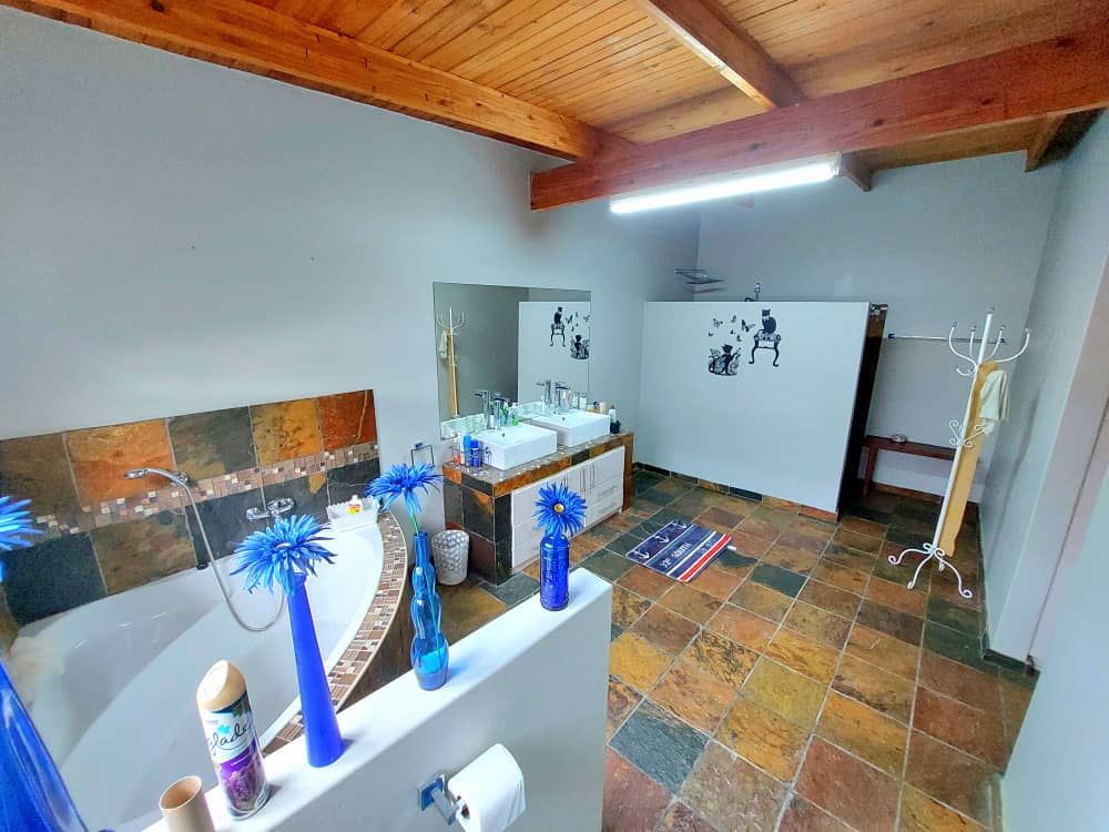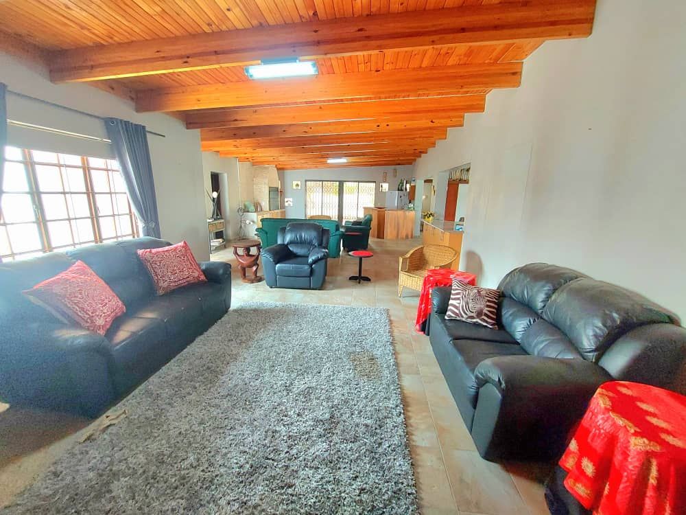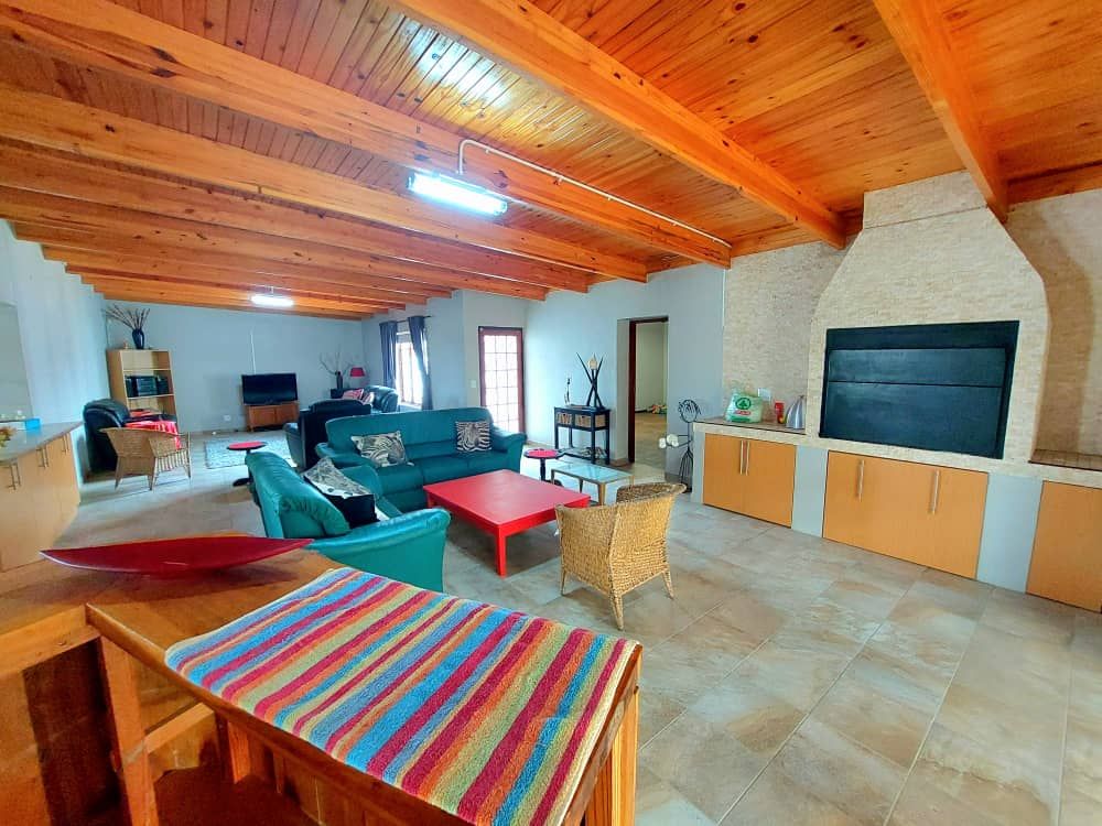 The heart of the home features a generous living room, perfect for relaxation and entertaining. Adjacent to the living area is an indoor braai area, ideal for hosting gatherings and enjoying cozy evenings all year round.