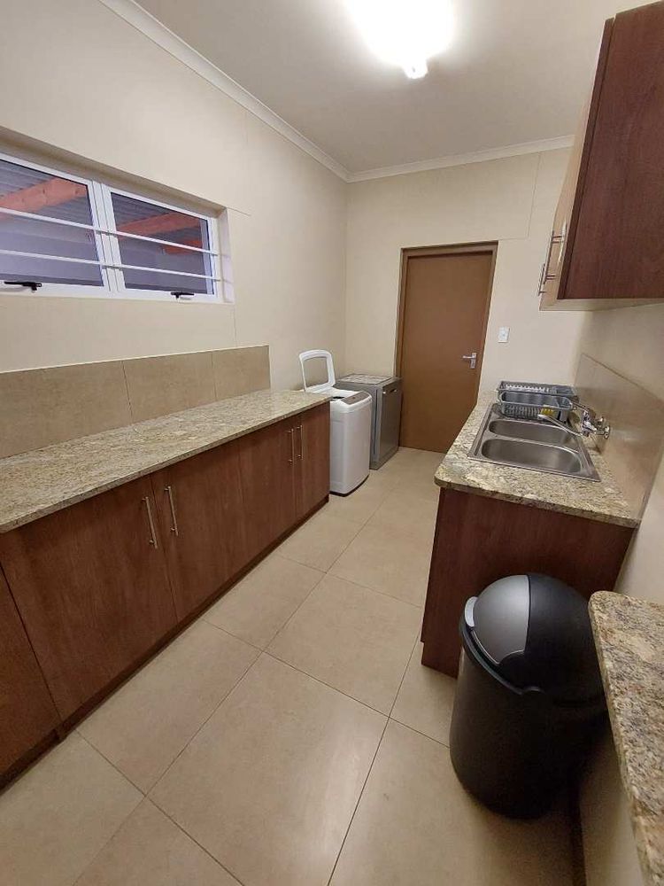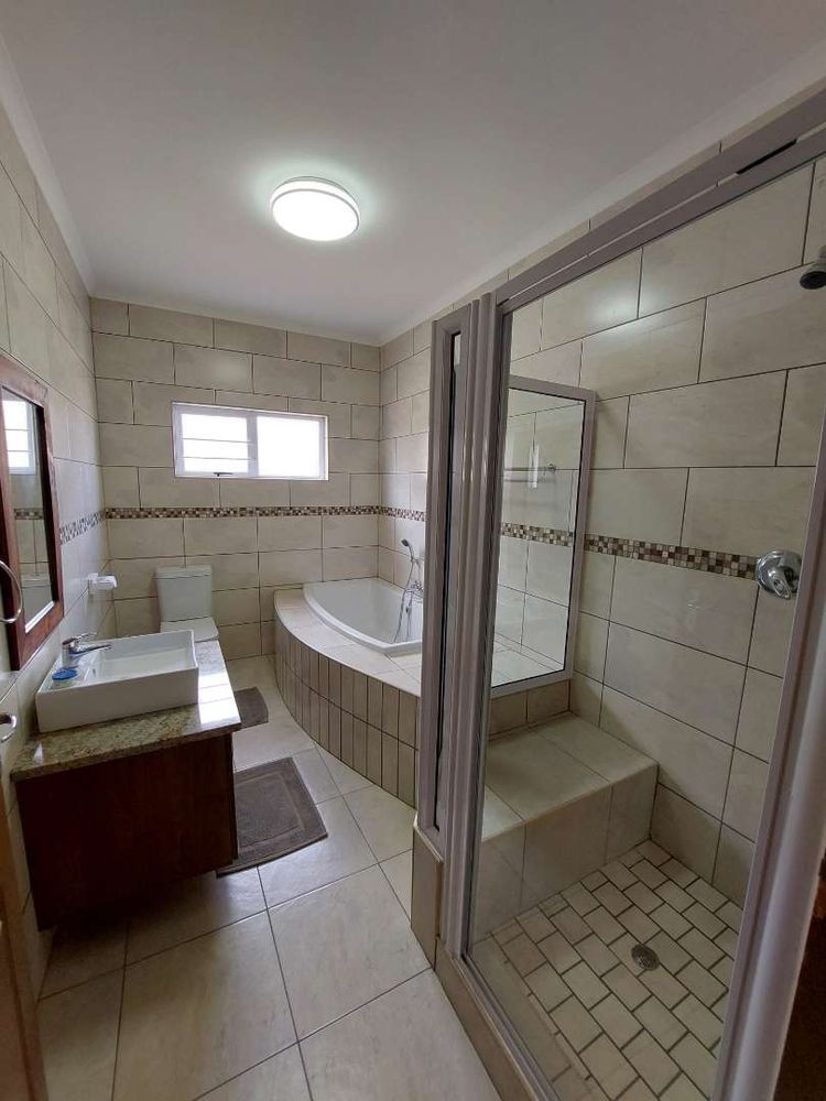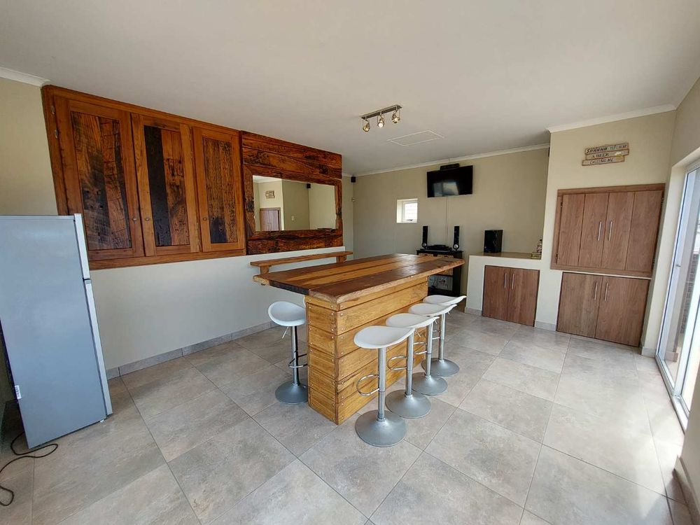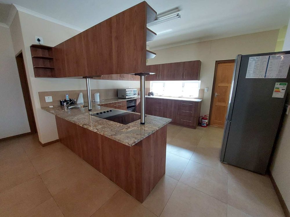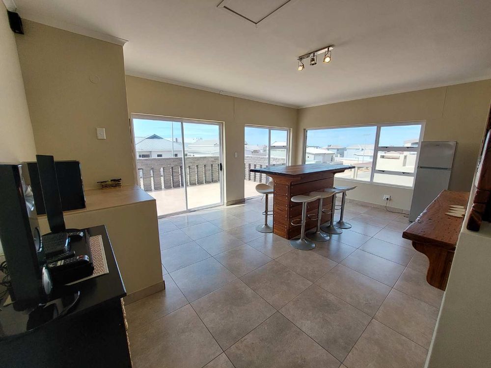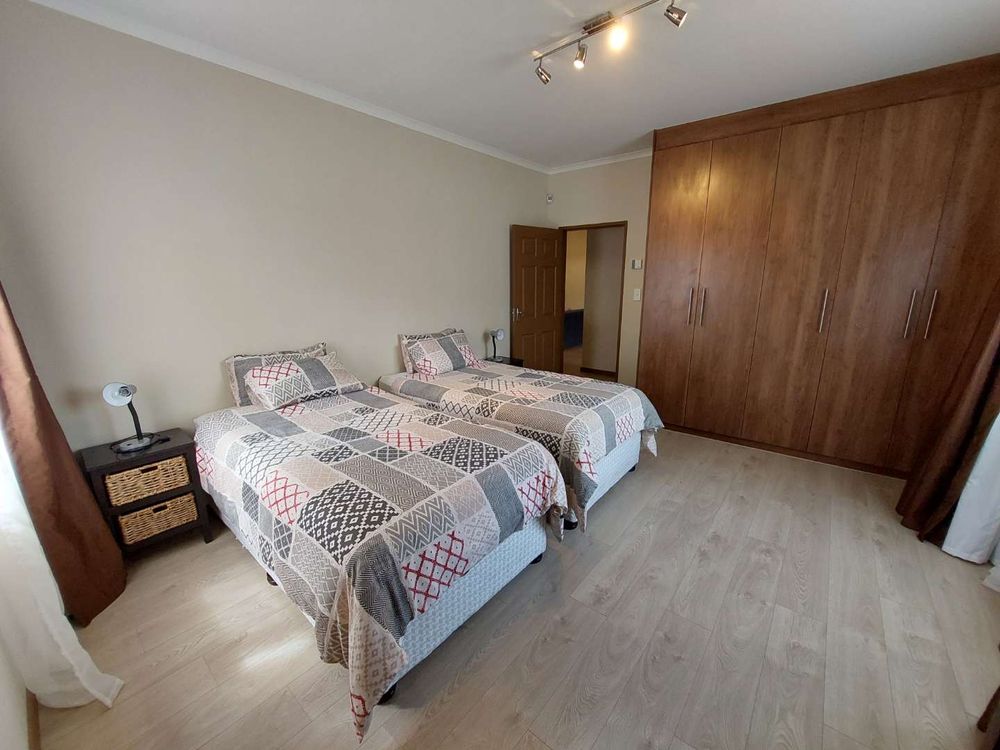 This self-catering home, located within walking distance of the beach, provides a tranquil atmosphere along with a beautiful entertainment area that boasts a distant view of the ocean.