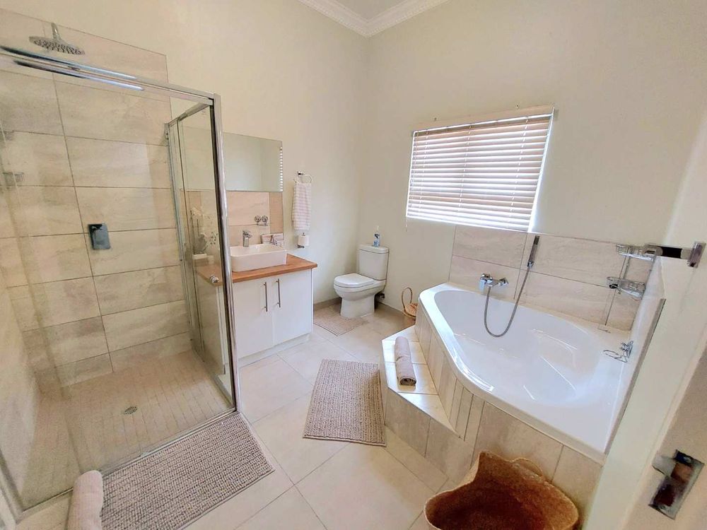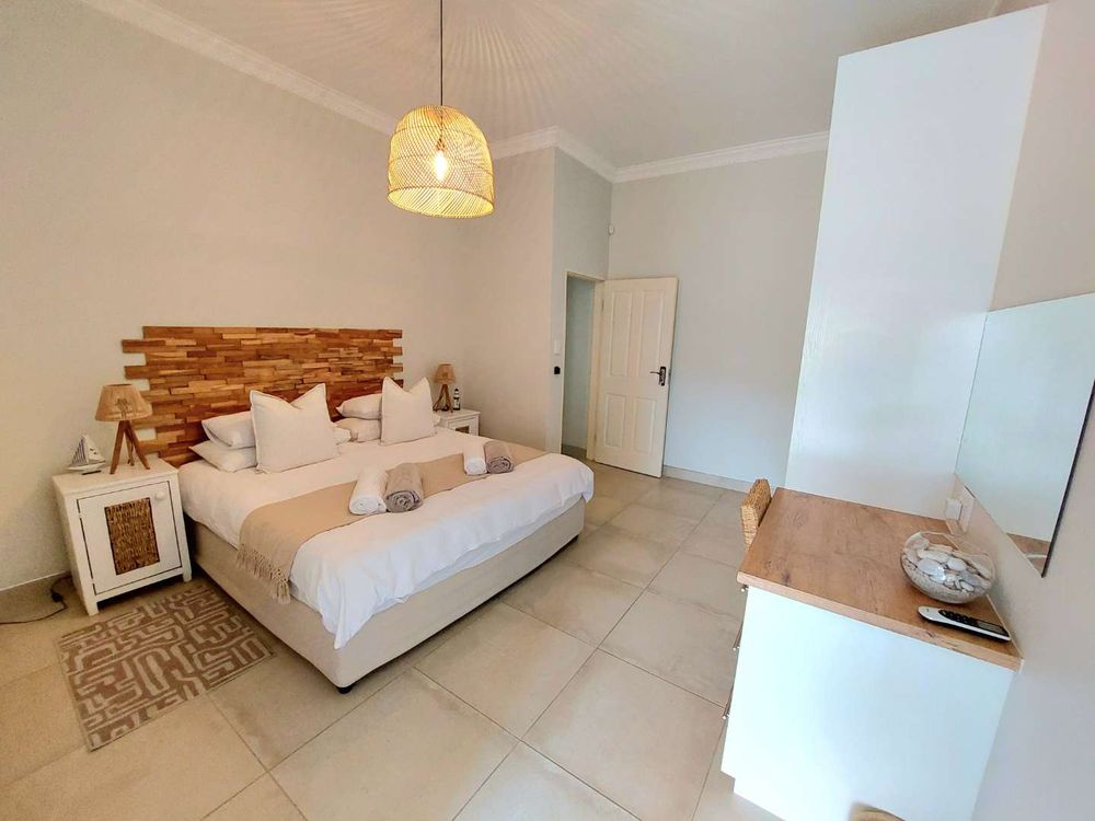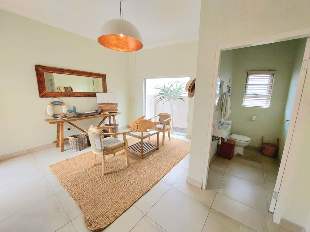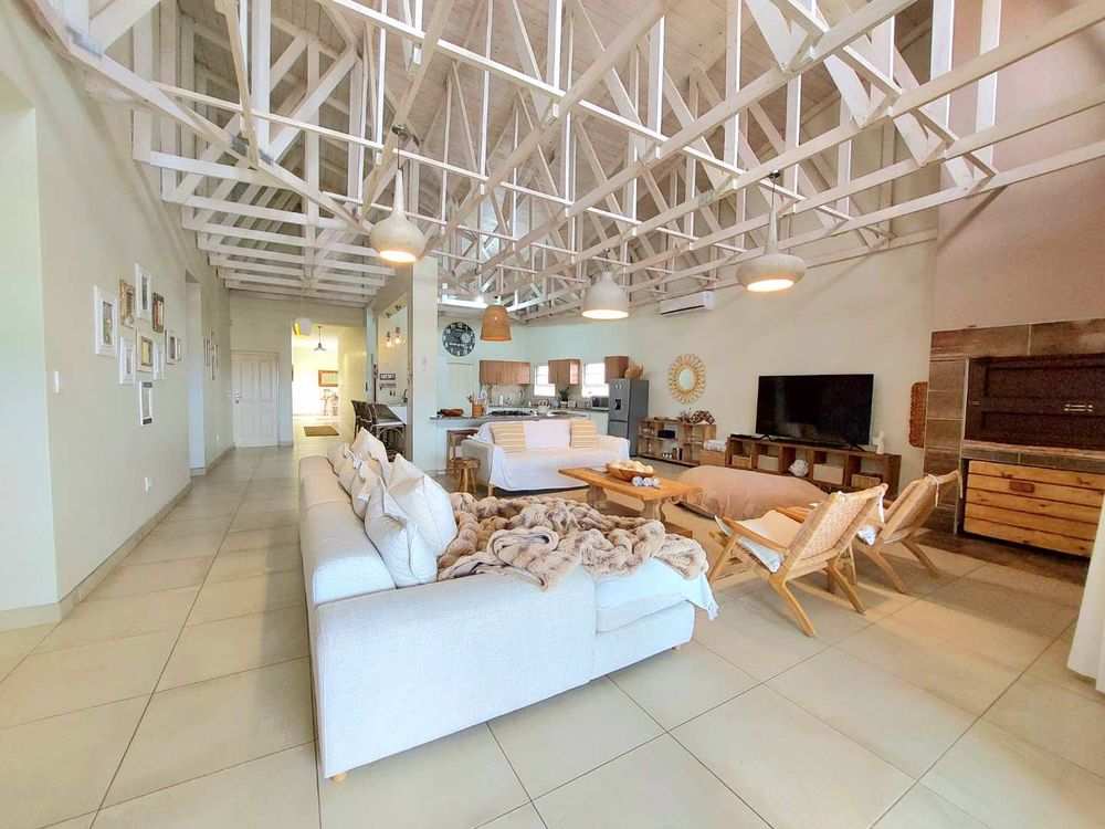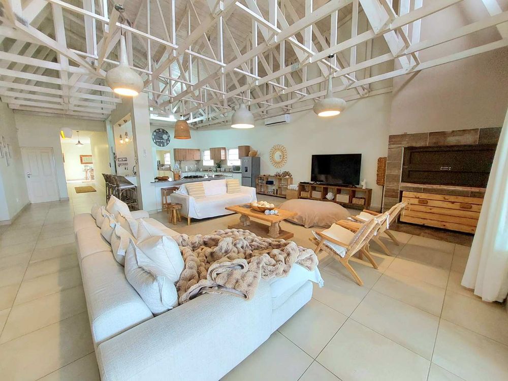 Escape to this exquisite self-catering home, a true sanctuary just a short stroll from the pristine beach. Perfect for families or groups seeking a tranquil getaway, this property offers an idyllic setting with a beautiful entertainment area designed for memorable family gatherings.
