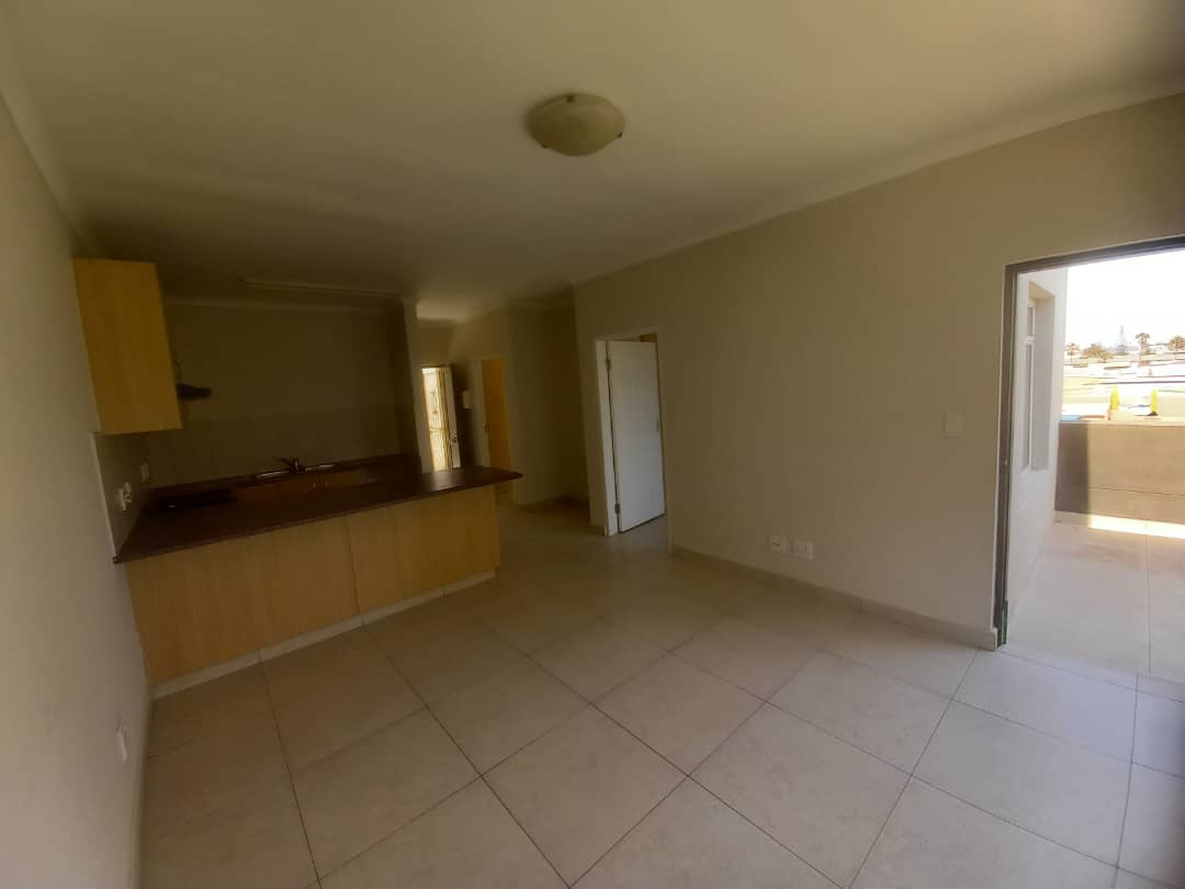 Step into the open-plan kitchen, living, and dining area, where natural light floods the space, creating an inviting and warm atmosphere. The seamless integration of these areas provides a perfect setting for entertaining guests or enjoying quiet evenings at home. From the living area, step out onto your private balcony and take in the stunning views of Walvis Bay, a perfect spot for morning coffee or evening relaxation.