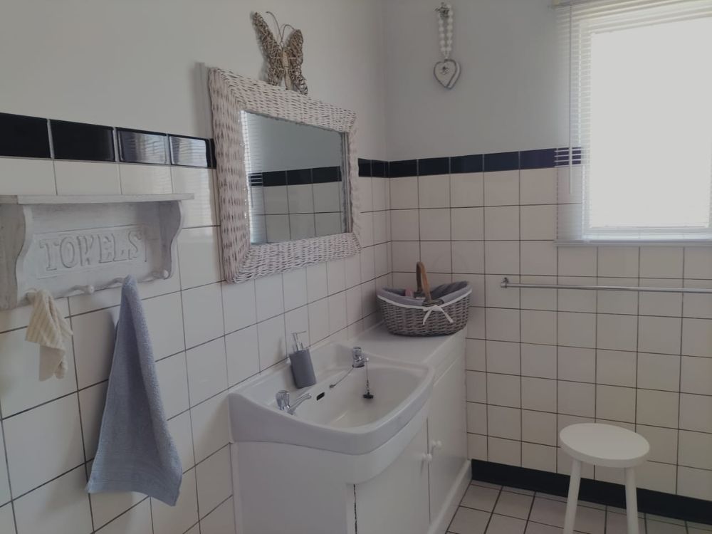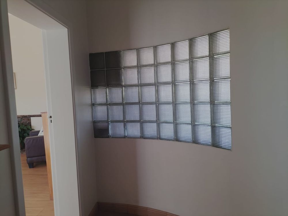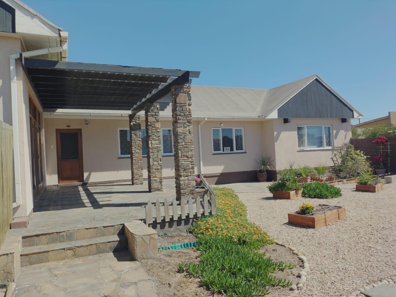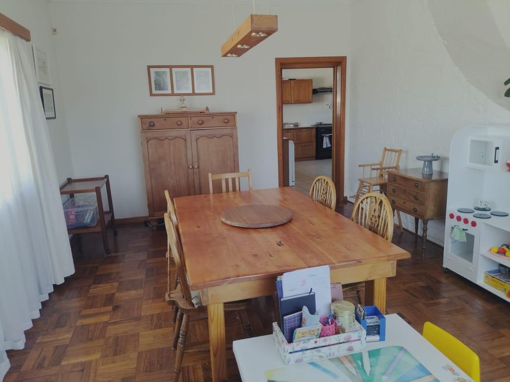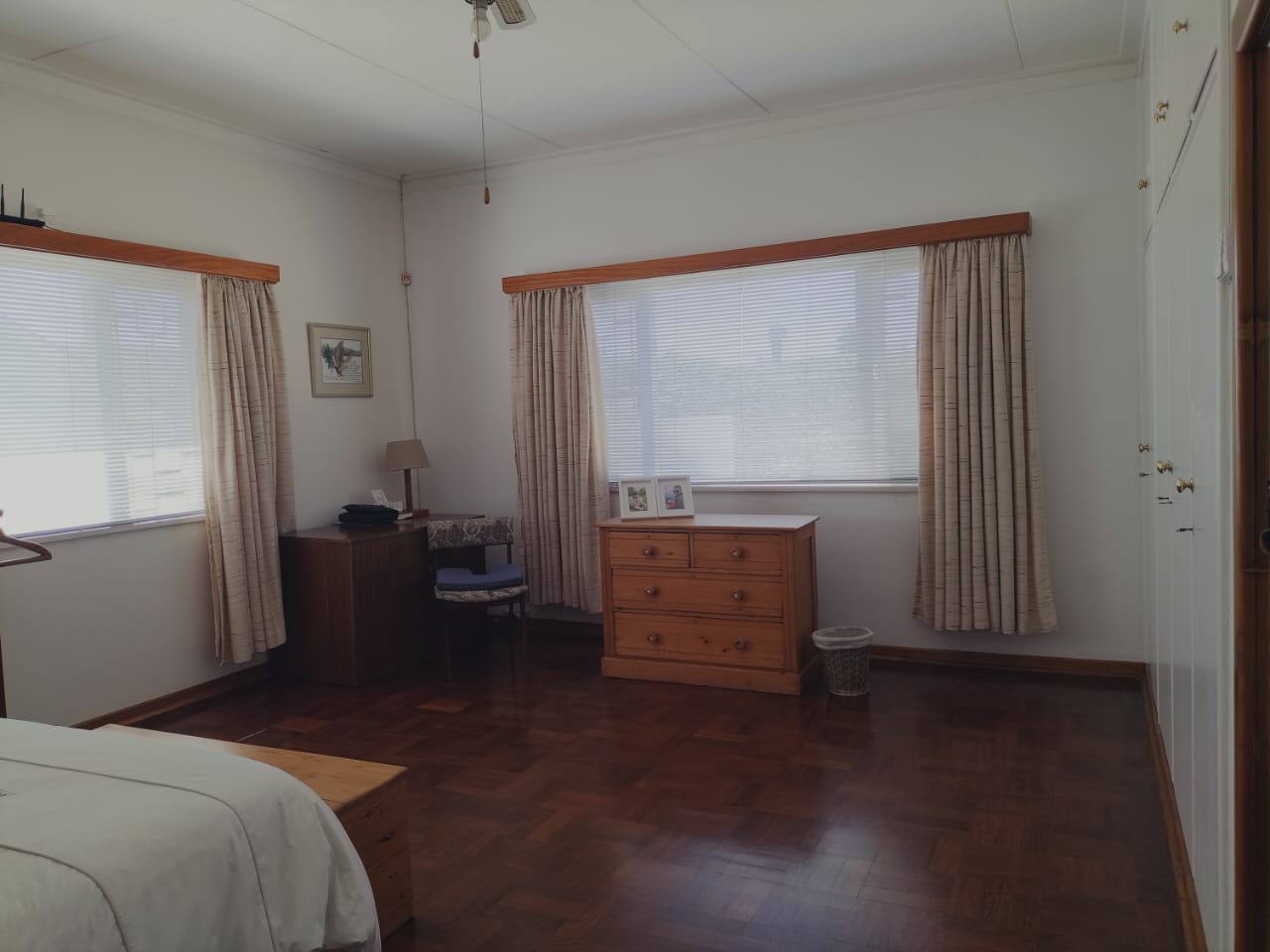 Step inside to discover spacious living areas, including a cozy living room equipped with a fireplace, air conditioning, and a ceiling fan, ensuring your comfort throughout the seasons. The heart of this home is its expansive kitchen, a baker's dream, featuring beautiful Kiaat wood cabinets and ample space for all your culinary adventures. A separate laundry room is thoughtfully included to meet all your laundry needs.