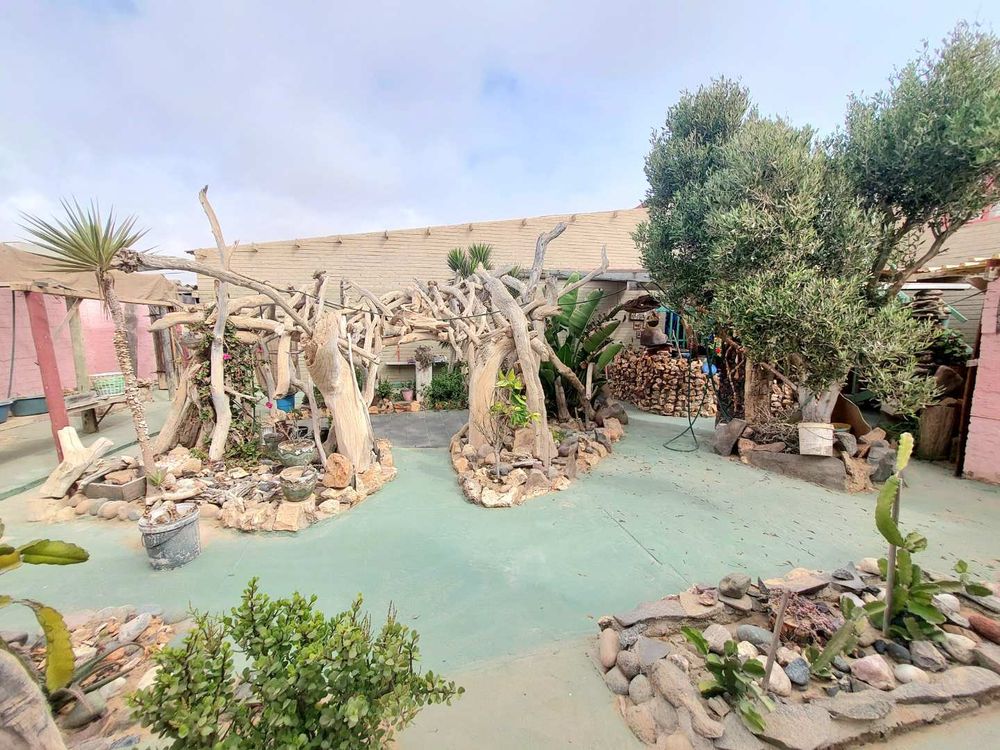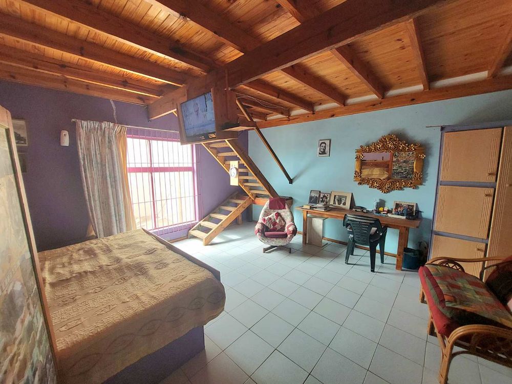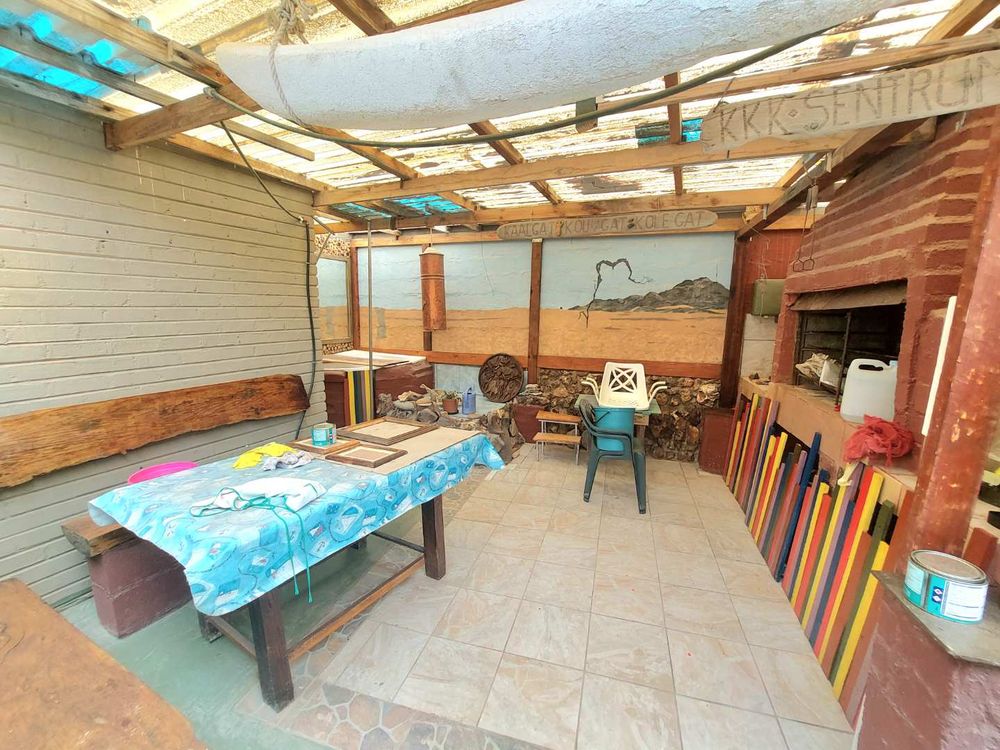 Step outside to enjoy the expansive erf, featuring a unique garden that promises tranquility and charm. The outdoor braai area is an entertainer's dream, perfect for hosting gatherings with family and friends. The property also includes three garages with additional storage space, catering to all your parking and organizational needs.
