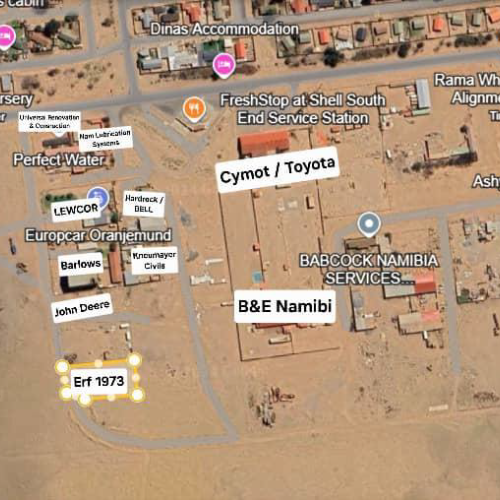 Transform your business vision into reality with this prime piece of land available for rent in Oranjemund. Ideally situated near major businesses such as B&E, Cymot, and Toyota, this location offers excellent visibility and accessibility for any new enterprise.