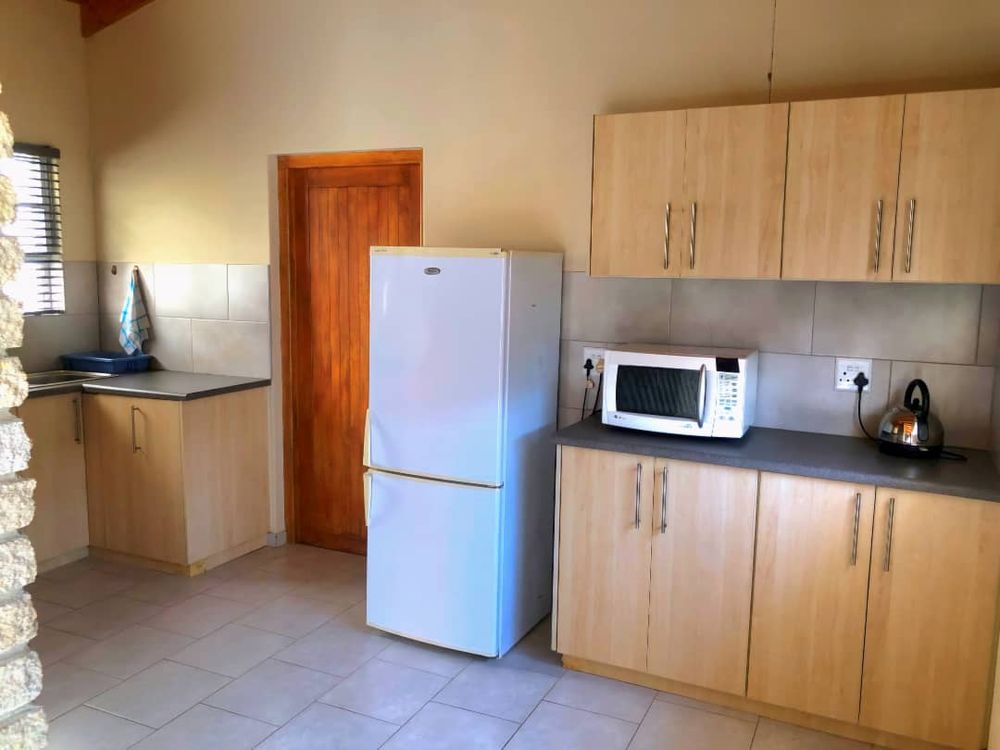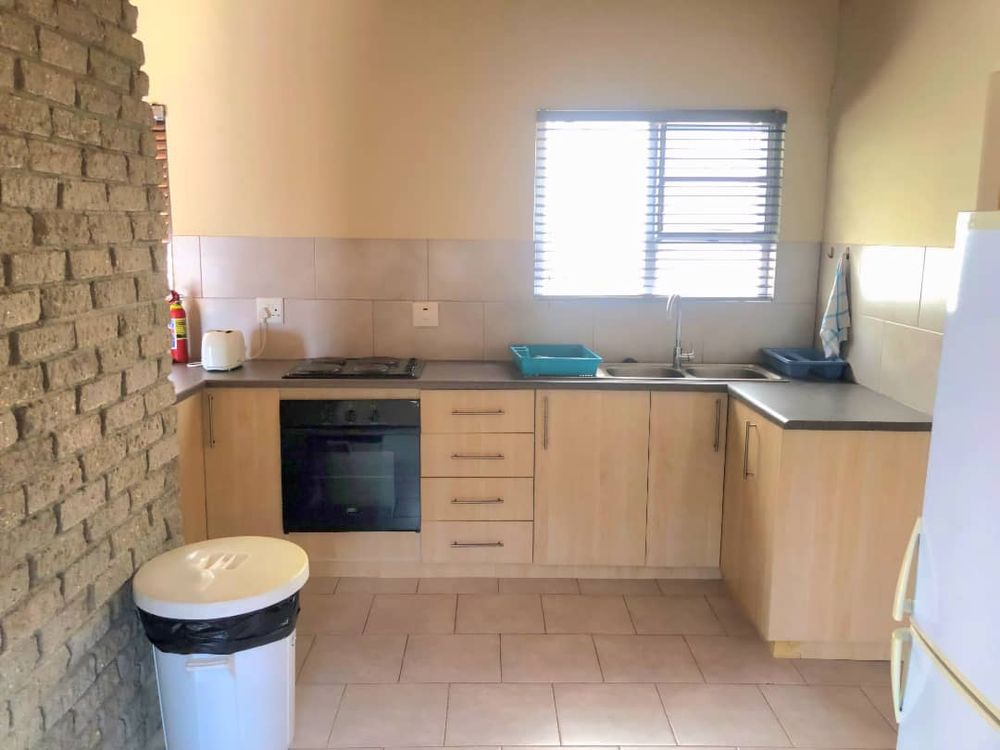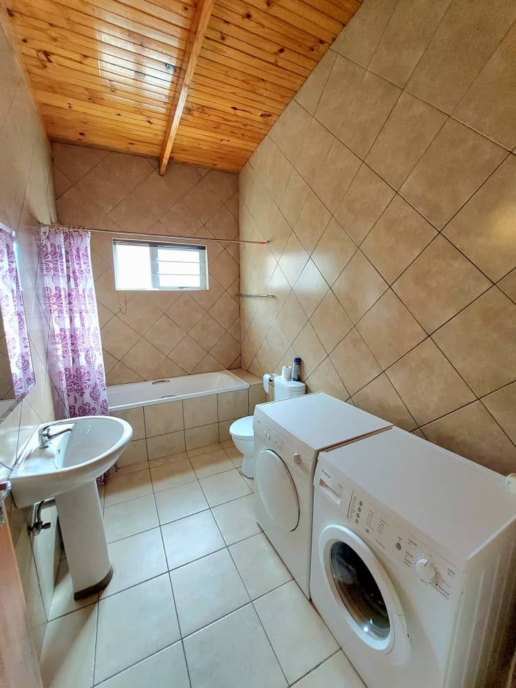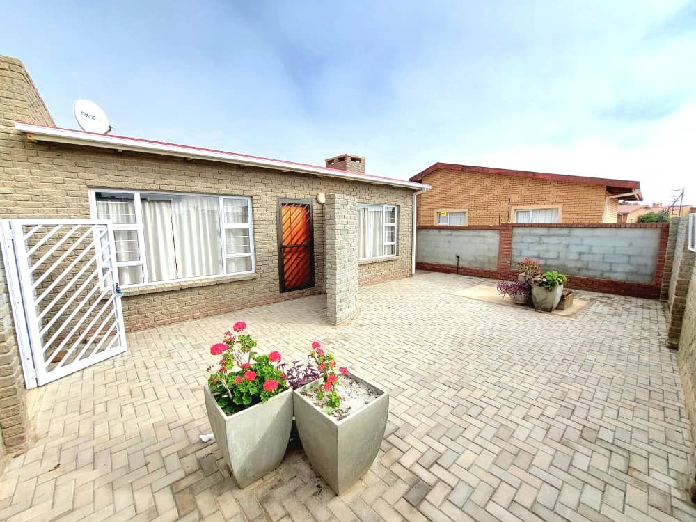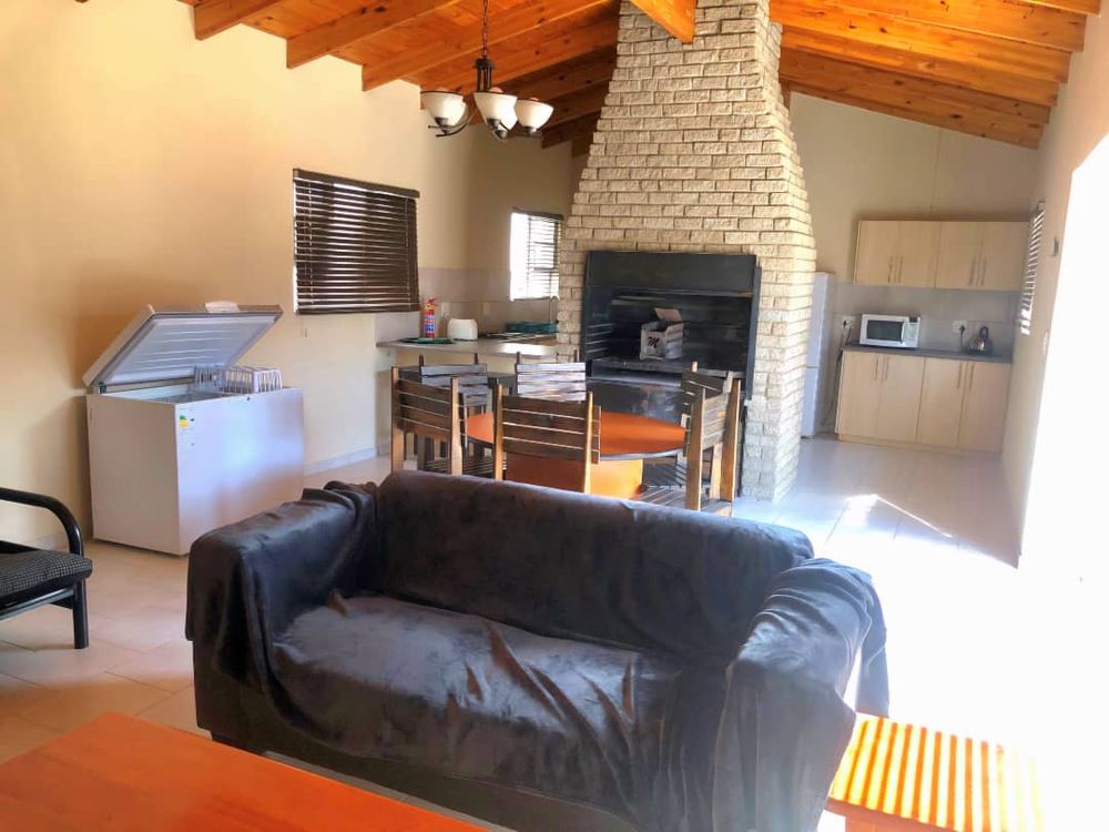 The main house 172m2 exudes a warm and inviting atmosphere. It features an open-plan living room and kitchen area with an indoor braai, adding to its cozy charm. The adjoining dining and braai area boasts a large 2nd indoor braai, perfect for hosting family gatherings. This space seamlessly extends onto an enclosed courtyard with high walls, providing additional room for entertaining. The house includes three comfortable bedrooms and two well-appointed bathrooms, ensuring ample space for everyone. Additionally, the property is equipped with a separate alarm system and a double garage for your convenience.