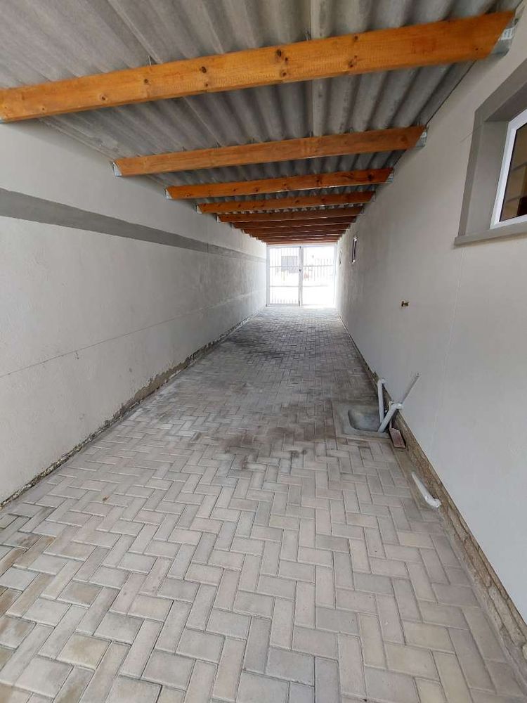 Step inside to discover an inviting open-plan kitchen, living, and dining area that seamlessly flows into an enclosed under-roof courtyard, complete with a traditional braai. The home's thoughtfully designed layout includes a scullery for added convenience.